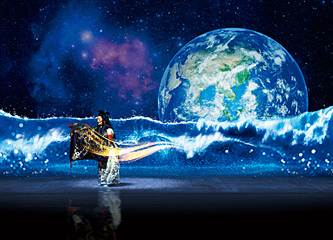 日本の伝統芸能である「能」と、東映が誇る最先端のコンピューターグラフィックスが融合したイマーシブシアターが誕生。三面スクリーンに囲まれたステージで能楽師が舞い、舞台音楽は邦楽にオーケストラが加わった新しいサウンドを楽しむことができます。これまでに見たことのない臨場感・立体感のあるエンターテインメントの世界がひろがります。鎮魂の芸能と言われる能楽の新しい世界。魂の舞をぜひご覧ください。