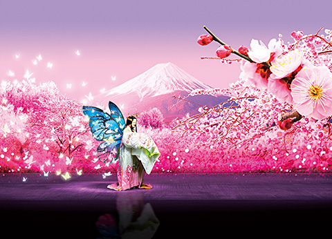蝶の妖精が四季の花々を愛で、出会うことのなかった冬の梅の花と喜び遊び戯れます。